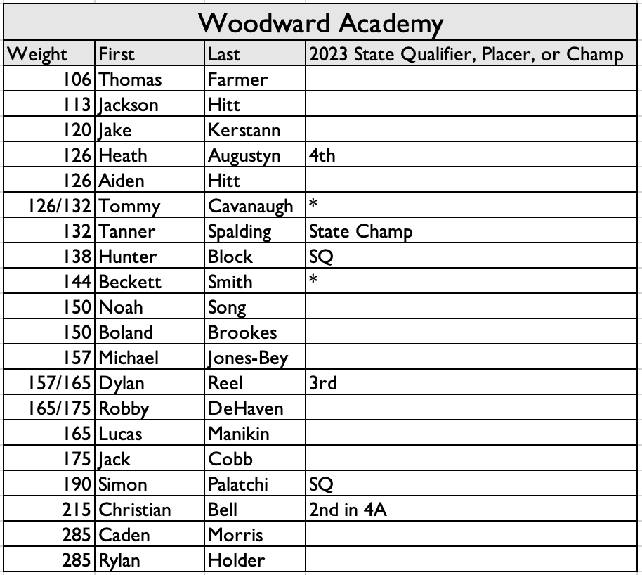 The team with the best shot to make the top 4 that isn’t one of those teams is … Woodward Academy (if Bell and DeHaven are in the lineup they will be a tough out with Reel, Augustyn, Spalding, and others taking a ton of points as well). With Bell and DeHaven, Woodward is a real darkhorse to win it all.