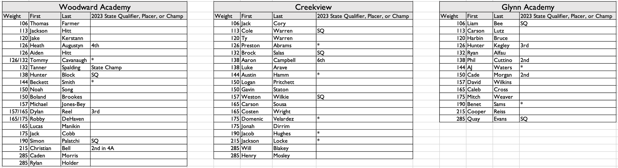 That makes for a very interesting bottom side. The teams on the bottom side will come to compete, but if those are the lineups we get from those three programs expect there to be some great duals (just like we always see in 6A) - don’t be surprised to see Cavanaugh step in at 132 for Woodward to allow Spalding to bump to meet Cuttino. Lots could happen in these duals.