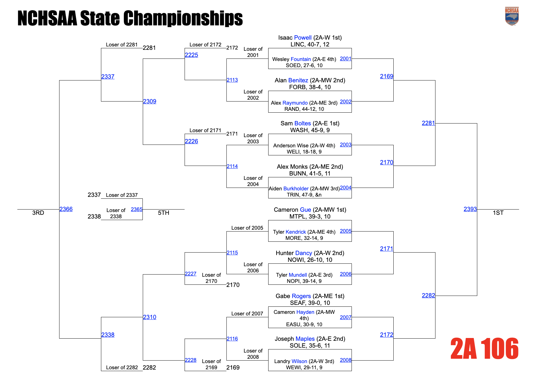 Almond vs. Miller in the quarters is a potential match of two 2023 113 lb. State Placers … in the quarters … Is 113 the best weight in 2A?