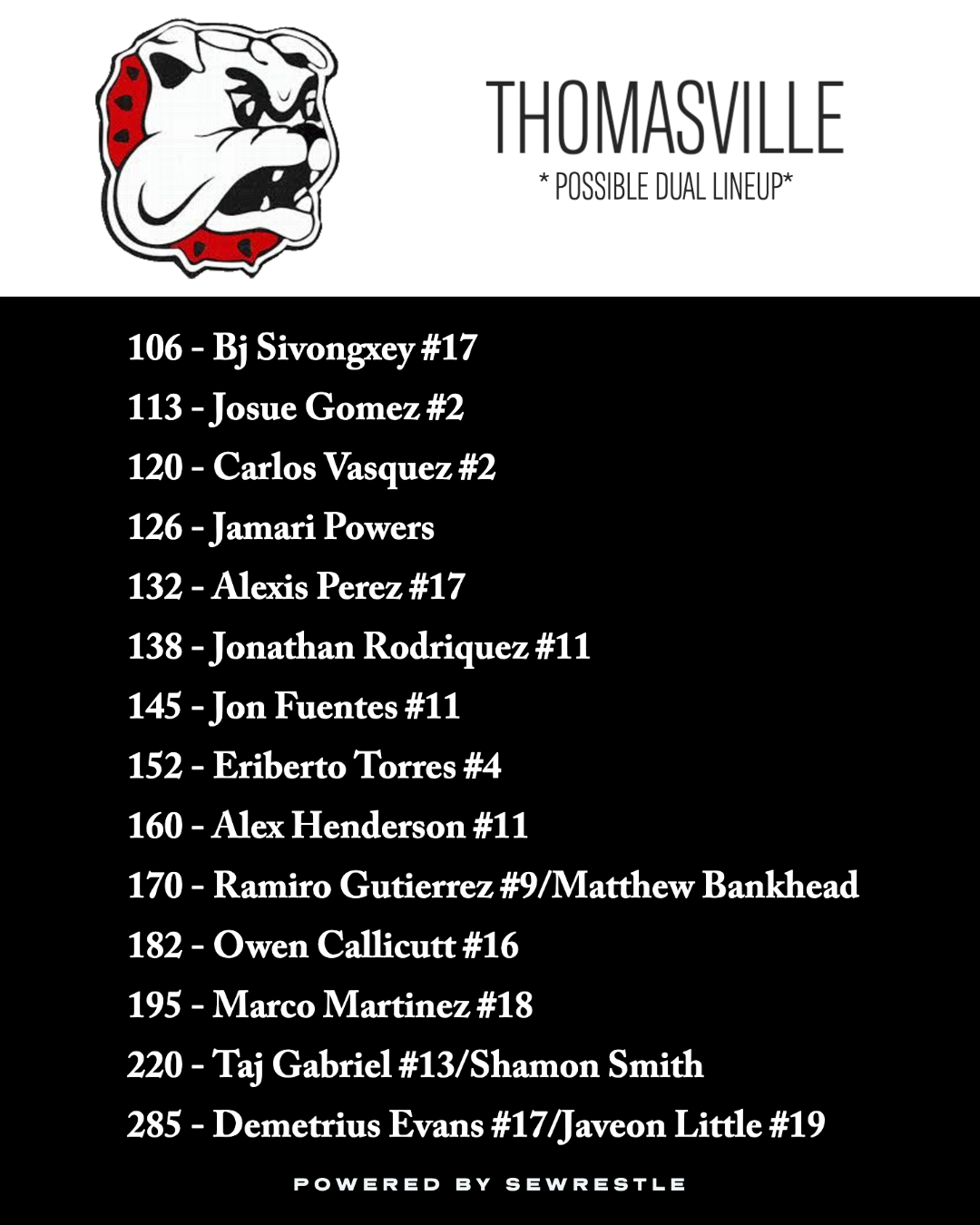 Returning State Runner-up Jason Kennedy has the edge at 126 … Thomasville will look to limit bonus here