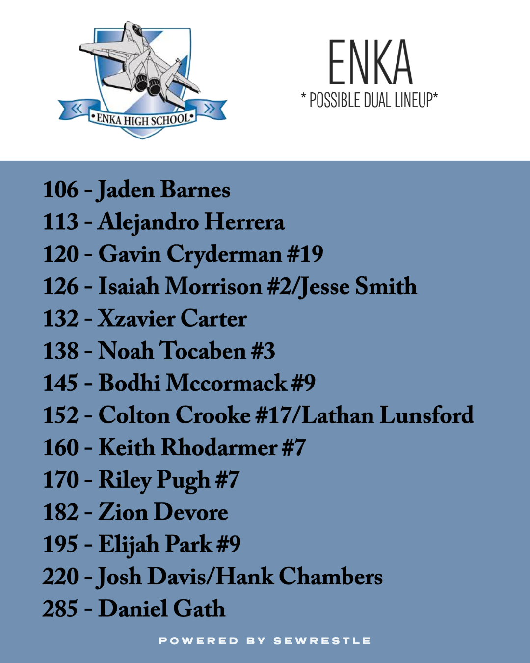 Foard has the decided edge in the dual, but there are a number of top 10 matchups that (if Enka could get - even though they are Foard leans) would be huge in Enka pulling the upset. Flipping a few of those will likely be necessary for Enka.