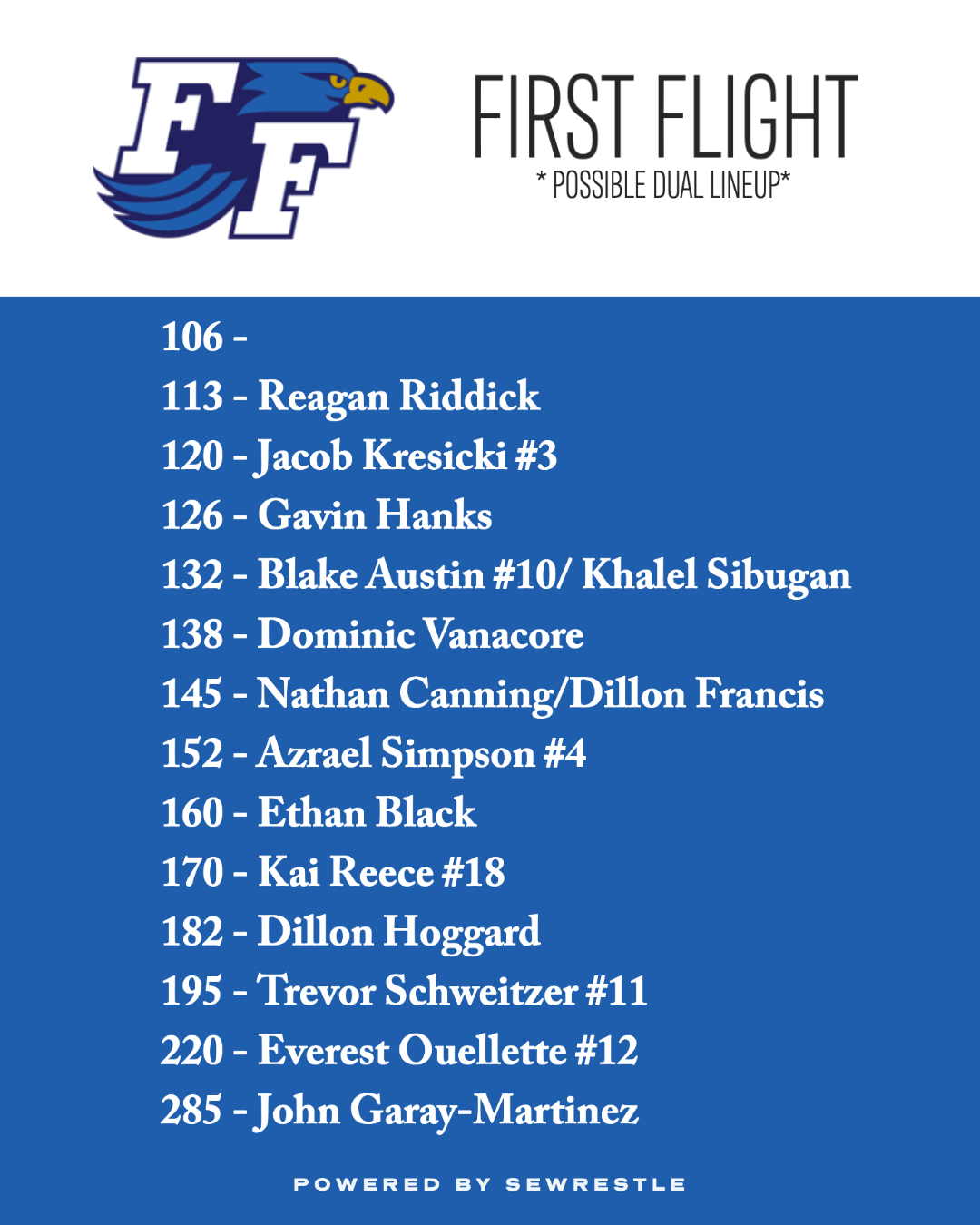 Returning State Champ Jacob Kresicki and returning placers Blake Austin and Azareal Simpson give First Flight a solid lineup down low but Kresicki will likely matchup with a good Jayden Crawford