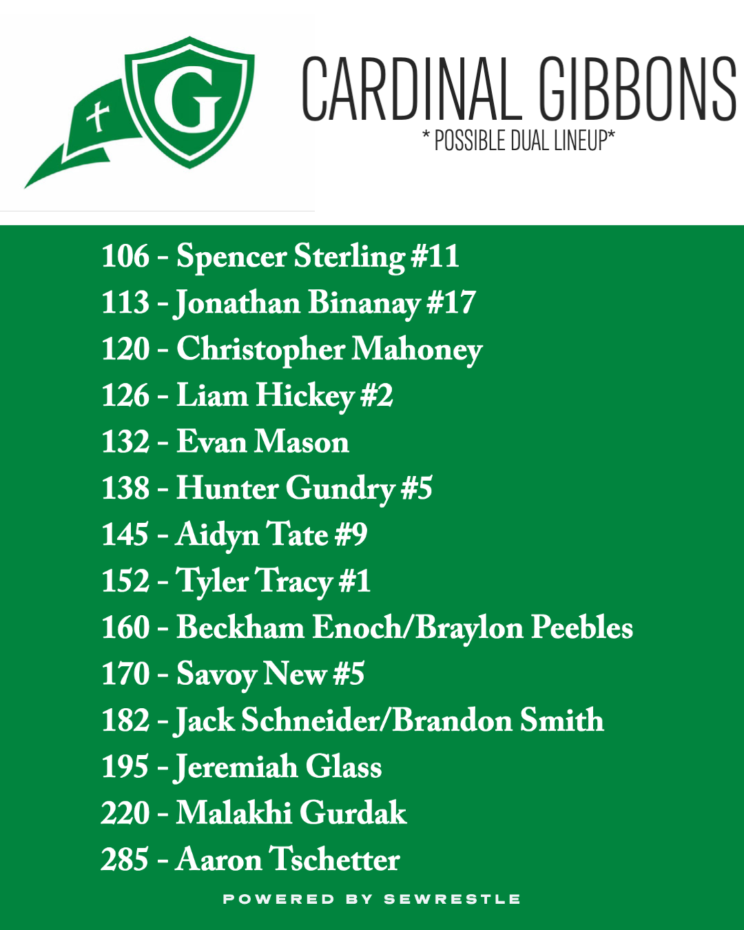Best match of the dual should be #5 Hunter Gundry vs. #9 Har Htoo … it leans to Gibbons, but expect a good/close match - which might be all New Bern needs